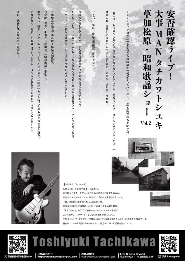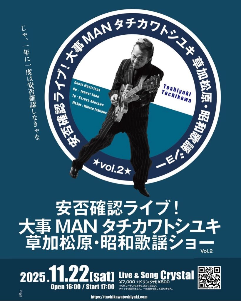 大事MANタチカワトシユキが、地元での安否確認ライブ!!!